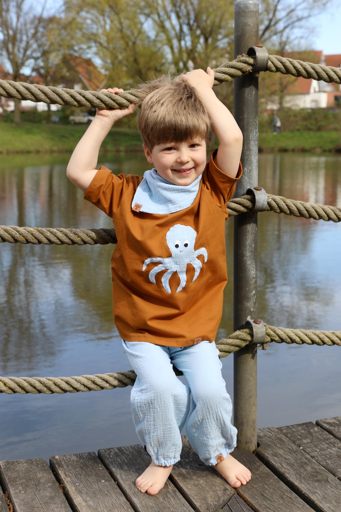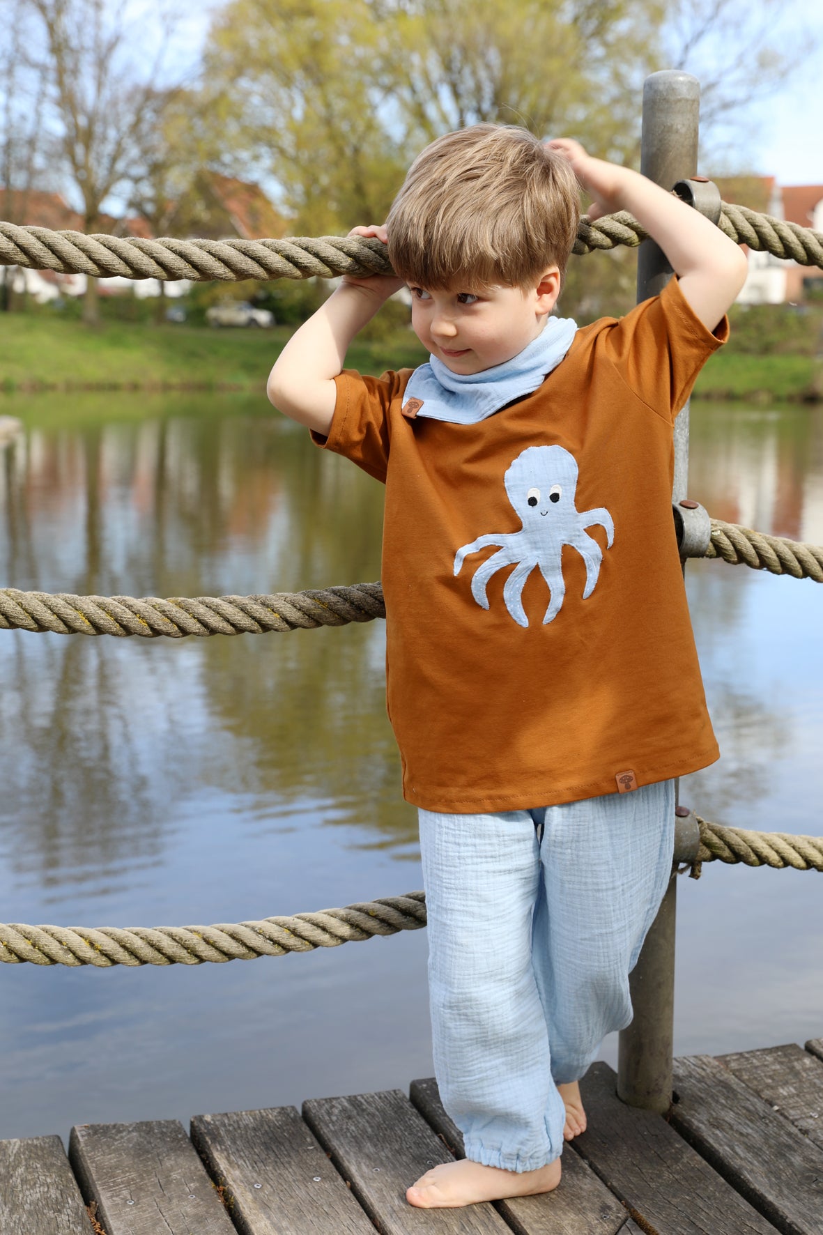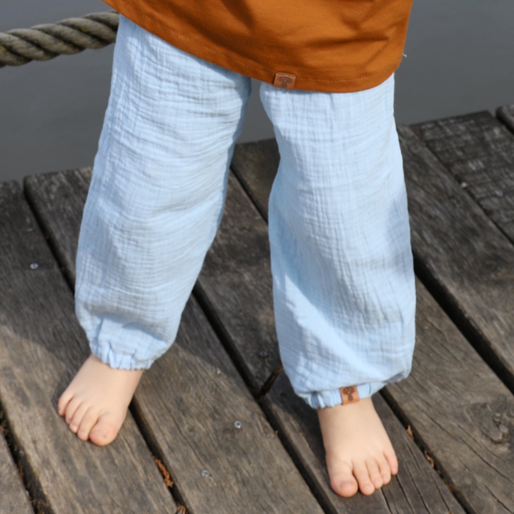 Locker, weit geschnittene Musselinhose mit Gummizug für warme Frühlingstage und den kompletten Sommer. Luftdurchlässig, leicht und unkompliziert.